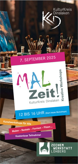 Das MAL-Zeit-Orga-Team bedankt sich ganz herzlich bei den Workshopleiter*innen, den Helfern, dem wunderbaren Team der Zechenwerkstatt (für die Unterstützung und Lokation), der Stadt Dinslaken (für die Förderung durch das Programm Glanzlichter), allen kleinen und großen Gästen und allen, die uns unterstützt und motiviert haben!